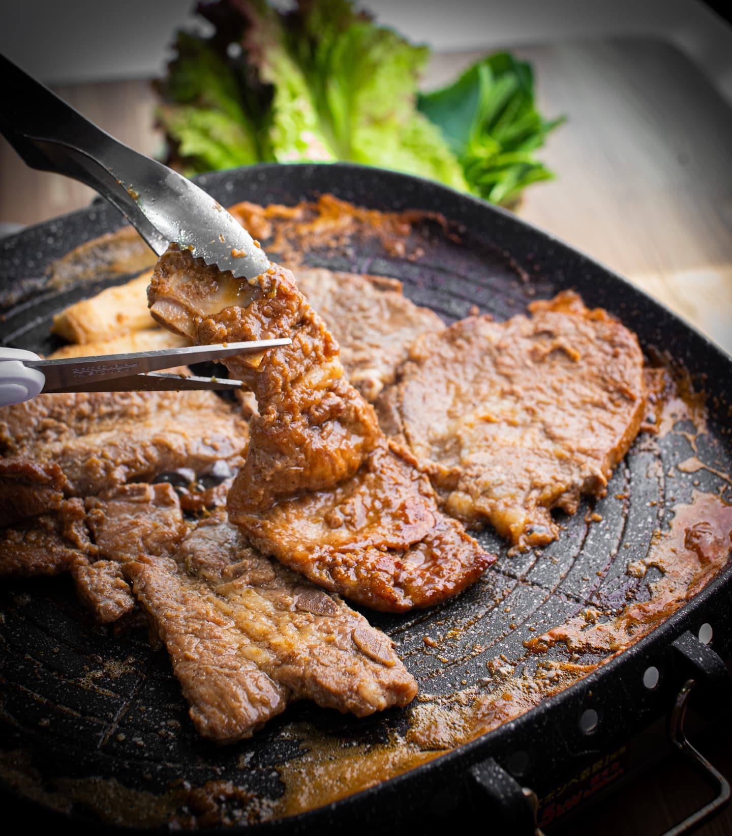 当店の料理の味付けで一番意識していることは「ヘルシー」であること。余計な調味料は用いずに素材本来の味を生かした韓国料理を追求しています。その中でご来店いただいたお客様からご好評を得ているのが、ヤンニョムテジカルビ。骨付きの豚カルビを、すりおろした野菜や果物を入れた醤油ベースの特製タレに2日以上漬け込んだ韓国の定番焼肉料理です。見た目よりサッパリだけども深みのある旨味をぜひご堪能ください!